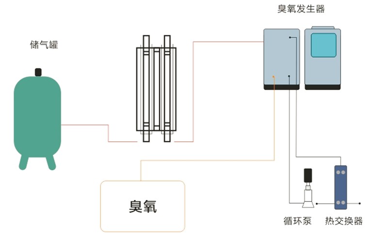 液氧源臭氧系統(tǒng)主要包括:液氧儲罐、氣化器和調(diào)壓裝置;臭氧發(fā)生器主機、配電和自控系統(tǒng);控制閥門和檢測儀表;臭氧投加和尾氣破壞系統(tǒng)組成。